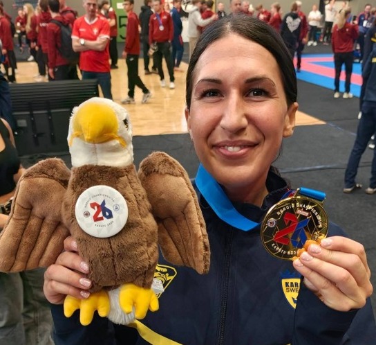 Na prestižnom takmičenju Nordiska Mästerskapen, održanom 11. aprila 2026. godine u Estoniji, sjajna Viktorija Kraljević, članica Solna Shotokan karate kluba, osvojila je zlatnu medalju u kategoriji kumite -68 kg.