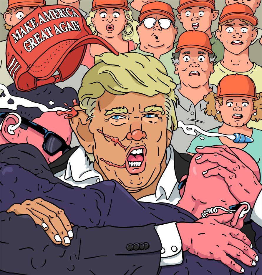 Usledio je opšti narativ: iako je Tramp mogao da uživa u svom bogatstvu i da se posveti porodici, on je, rizikujući život, odlučio da bdi nad sudbinom svojih sugrađana. Bog ga čuva i on će nastaviti da se bori pod svojim Make America Great Again (MAGA – njegov omiljeni akronim). Direktorka njegove pobedničke kampanje iz 2016, Kelijen Konvej, insistira na požrtvovanju svog bivšeg šefa: „On je milijarder koji bi mogao da igra golf svaki dan u nekom kompleksu čiji je on vlasnik. Njemu nije bilo potrebno da bude predsednik, ali nama jeste, on nam je potreban.“ Erik Tramp takođe je rezimirao vrlost svog oca: „Odlučio je da se odrekne udobnosti finansijske imperije. Znao je da će ga to skupo koštati.“