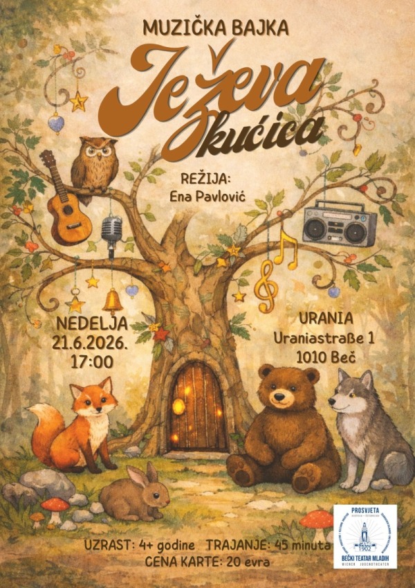 Mališani i njihovi roditelji Prosvjetine škole srpskog jezika u Austriji ali i sva druga deca uskoro će imati priliku da uživaju u čarobnoj dečjoj predstavi „Ježeva kućica”, muzičkoj bajci koja na topao i emotivan način oživljava bezvremeni svet Branka Ćopića. U režiji diplomirane glumice Ene Pavlović, predstava okuplja glumce Bečkog teatra mladih i učenike Prosvjetine škole srpskog jezika, donoseći priču o skromnosti, pripadnosti i ljubavi prema domu i umetnosti.