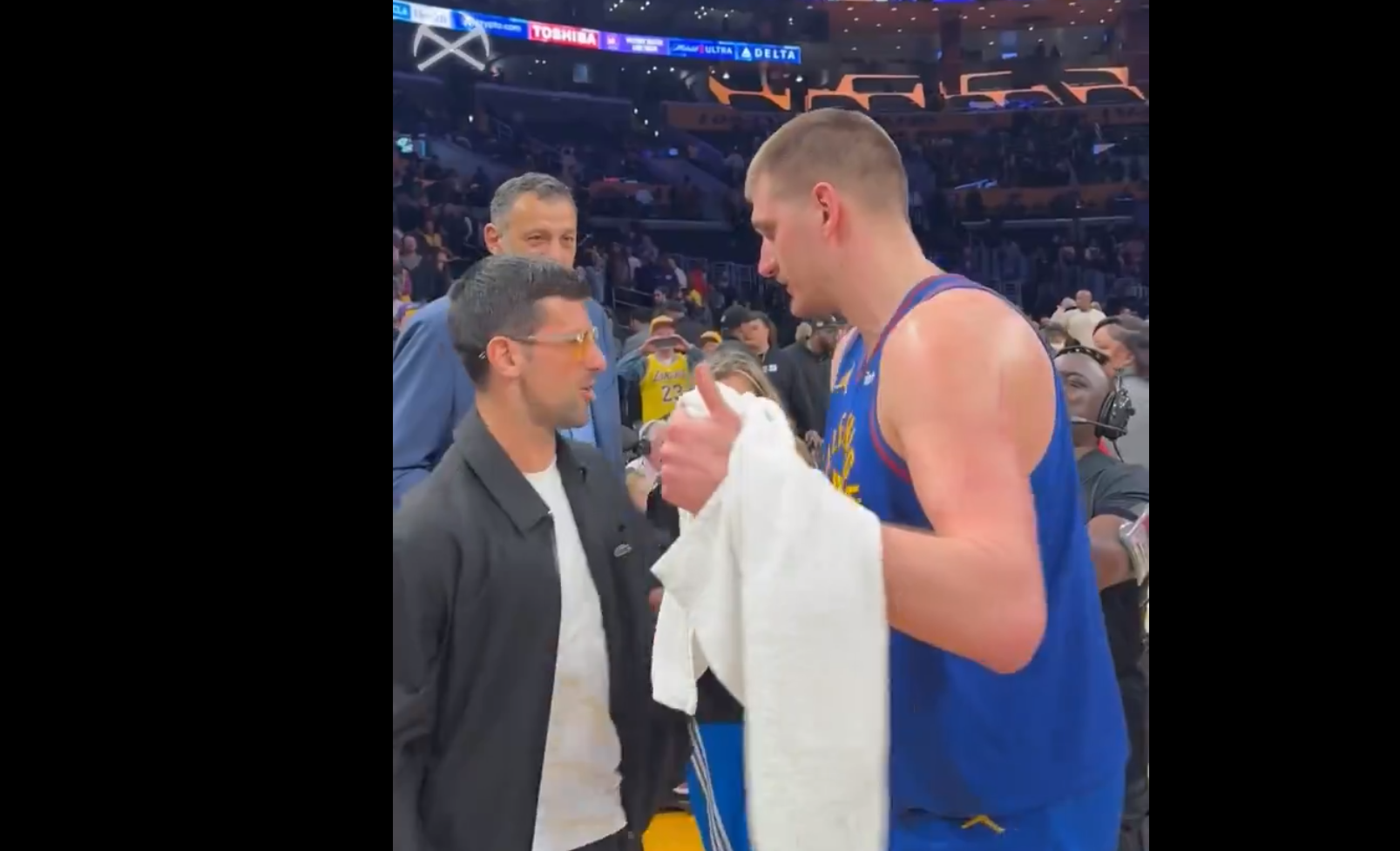 „Nikola, čestitam ti na istorijskoj sezoni. Iz naše lepe i voljene Srbije do Denvera, mi smo preponosni na tebe. Pokazao si svima da možeš da napreduješ još više nego dosad u ove tri, četiri godine. Slomio si toliko rekorda, napravio istoriju sporta, ne samo u Americi, već i širom sveta. Šaljemo ti pozdrave iz Srbije u Denver, nadamo se da ćeš napraviti još istorije u ovom sportu“, rekao je Đoković.