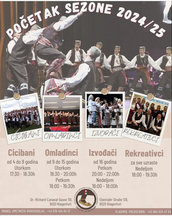 Bez obzira na tvoje iskustvo – bilo da si već igrao ili tek želiš započeti – u našem ansamblu ima mesta za sve! Pored igre, nudi se prilika da putuješ, nastupaš na raznim manifestacijama i budeš deo jedne velike porodice. Dođi i postani deo našeg tima! Očuvajmo tradiciju zajedno – zaigramo u novoj sezoni!”, poručili su članovi SKC Zavičaj iz Klagenfurta.