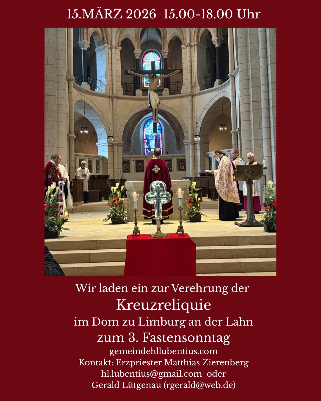 Drugi važan događaj na području Crkvene opštine Frankfurt jeste poklonjenje delu Časnog Krsta u Dom Limburg. Manifestacija će trajati od 15 do 18. „U Limburgu u hramu Sv. Lubencija služi otac Matijas koji je Nemac po nacionalnosti, a sveštenik u našoj crkvi. Od ove godine on je pričaslen pri hramu Vaskrsenja Gospodnjeg u Frankfurtu i njegova misija je na nemačkom govornom području, gde vlada sve veće interesovanje za Pravoslavno ispovedanje vere”, dodato je u CO u Frankfurtu.