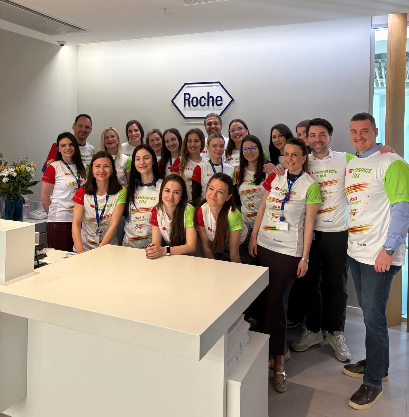 Članovi Roche tima nastupili su u majicama sa oznakama BELhospice i Roche, simbolizujući spoj korporativnih vrednosti i građanske odgovornosti.