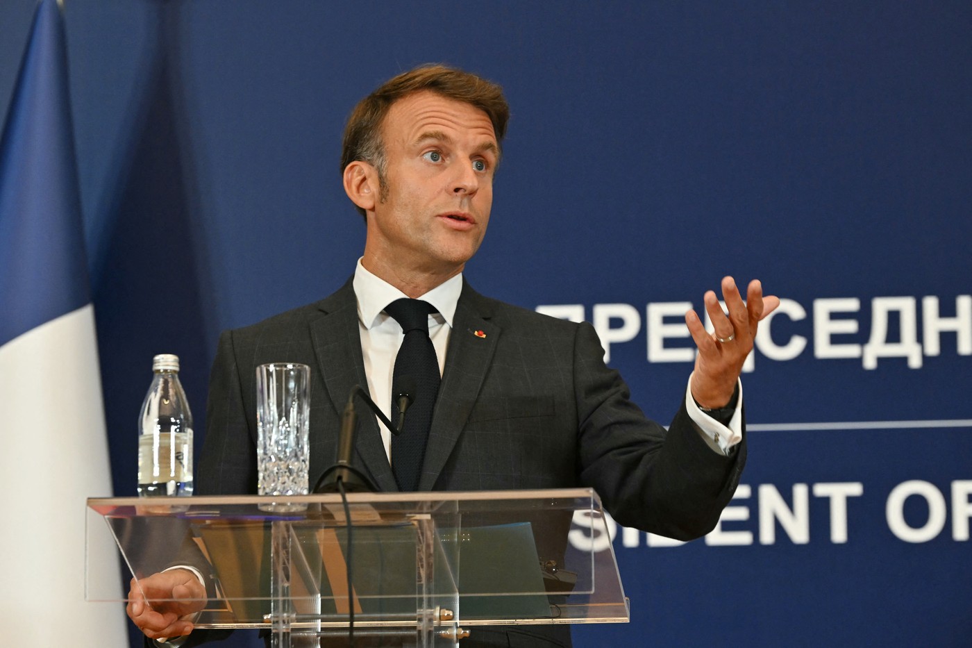 „Francuskar pokreće inicijative da se glas Srbije poštuje i čuje. Francuska kao i Srbija teži ka nezavisnosti i suverenitetu koji danas sama EU može da joj ponudi zahvaljujući strateškim sredsstvima kojima raspolaže. Ta doktrina je ono što Francuska nosi već sedam godina u EU, što nose svi Evropljeni i to je ono što zovemo agenda iz Versaja 2022“, istakao je Makron.