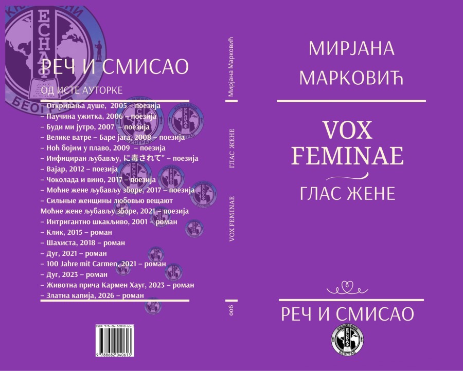 Ovo su reči Ilije Šaule, književnika, glavnog urednika i i vlasnika izdavačke kuće ‘Književni ESNAF’, edicija ‘REČ I SMISAO’ u čijem izdanju je marta 2026. štampana knjiga kratkih priča ‘Vox feminae- Glas žene’, Mirjane Marković.